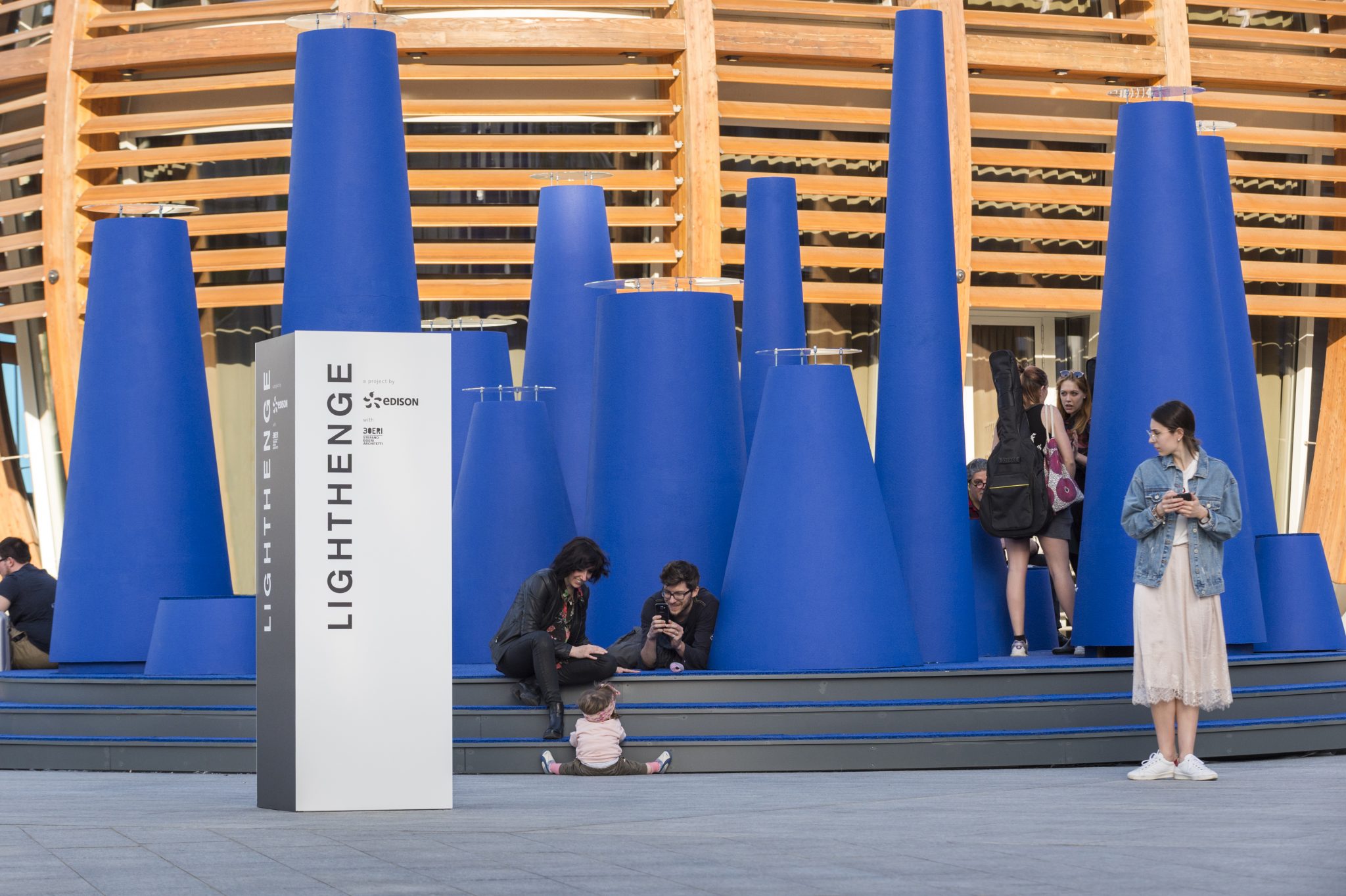 由博埃里建筑设计事务所为爱迪生设计,并参加2018年米兰国际家具展,在Piazza Gae Aulenti展示。Lighthenge是一个城市装置,展现了风景宜人、可用于分享的能源理念及其对当代文化和社会的广泛影响。同时,它充当了一个消除静电的装置,可以让大众暂时得到休息,并从大都市流动的疯狂中恢复过来。该项目的概念源于对指导爱迪生业务和研究的关键原则对的反思,并将其使命推向未来:能源/运动,创新/互动,尊重/圈子,圈子/共享,平衡/声音,未来/光。