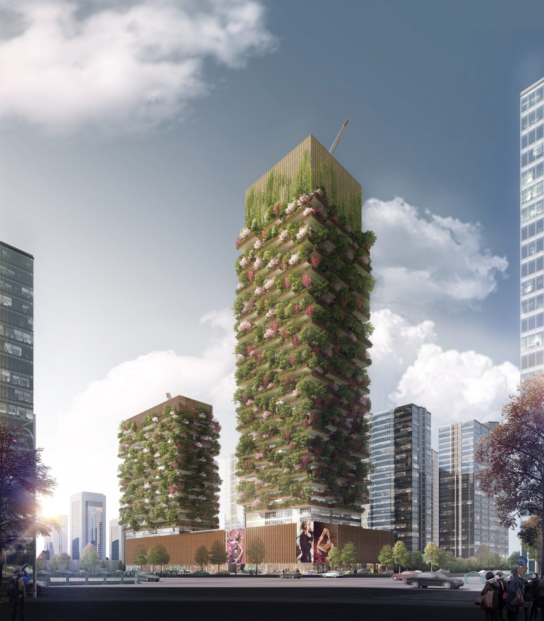 建筑外立面上将有600棵大型树木,500棵中等大小的树木(共有1,100棵树,其中23种本地树种)和超过2500棵灌木和落叶植物将覆盖6 000平方米的面积。