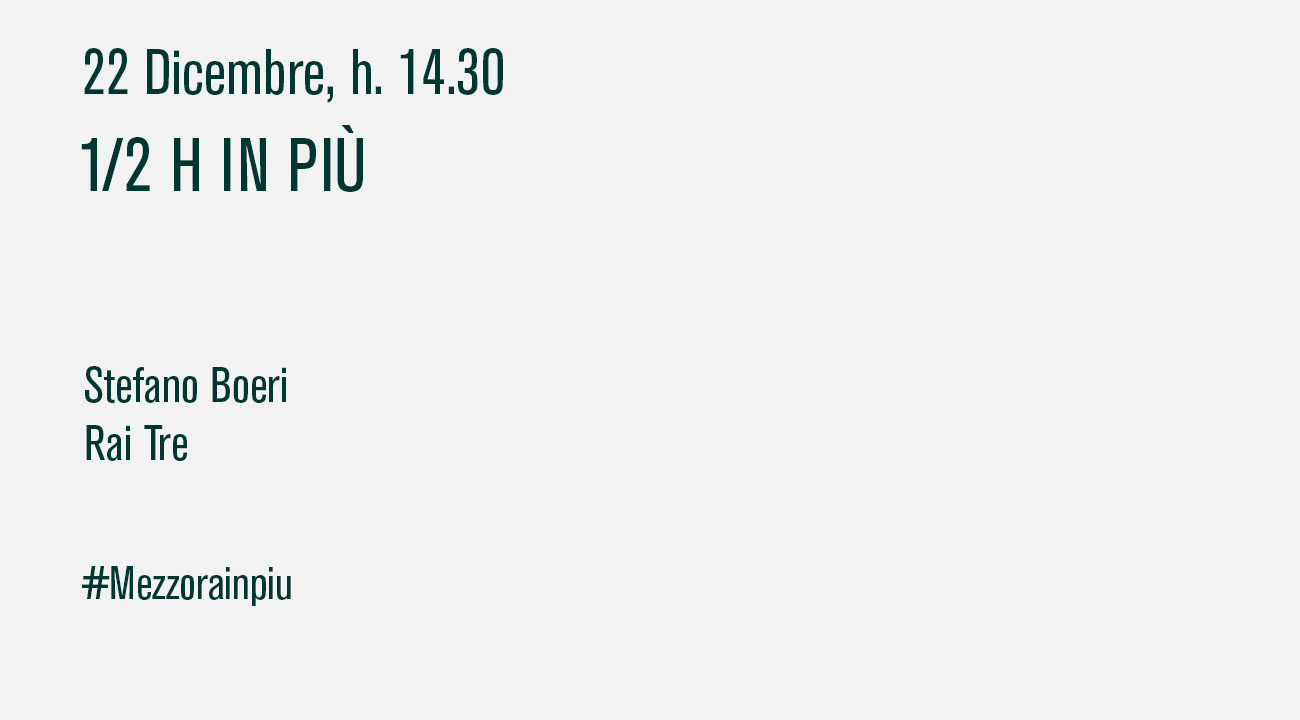 20 12月 2019 1/2 h in più | rai 3 12月22日周日,斯坦法诺.博埃里与Lucia Annunziata一起探讨当代关于国土和国家现实相关的各种问题。 该节目名为“ 1/2 h in Più”,于下午2.30在Rai Tre播出。