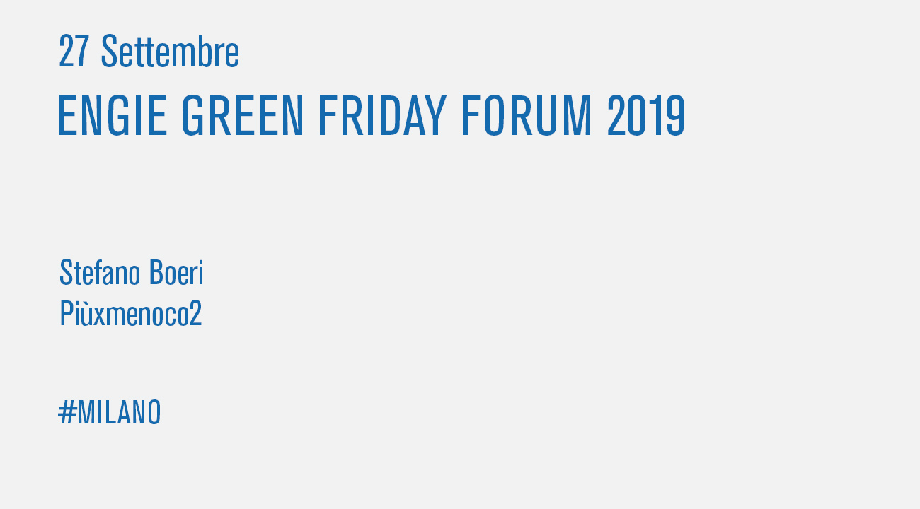 2019年9月27日星期五,PIUXMENOCO2: Engie 绿色星期五论坛2019活动在Fondazione Riccardo Catella举行。
