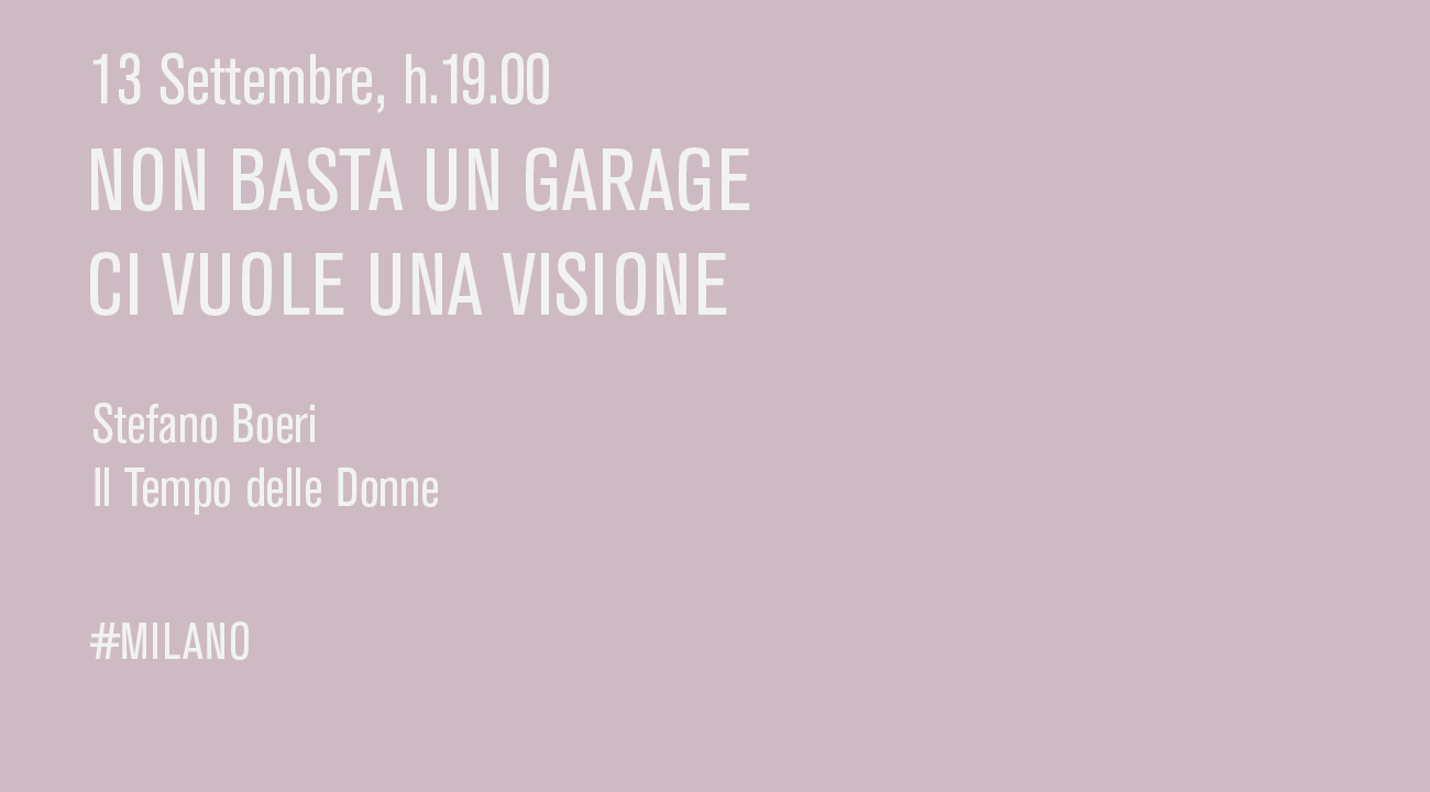 晚上7点,建筑师与 Eva Cantarella,Massimo don,Ivano Gamelli,Cecilia Laschi,Barbara Mazzolai,Francesco Monico,Vincenzo Moretti,Gianmarco Ottaviano,Patrizia Tiberi Vipraio,Claudio Tuniz 和 Nicla Vassallo 一起参加了 Non Basta un Garage Ci Vuole Una Visione 的谈话。通过哲学、科学、人类学、环境保护主义、艺术、技术和诗歌,参与者提出了他们对未来的看法。