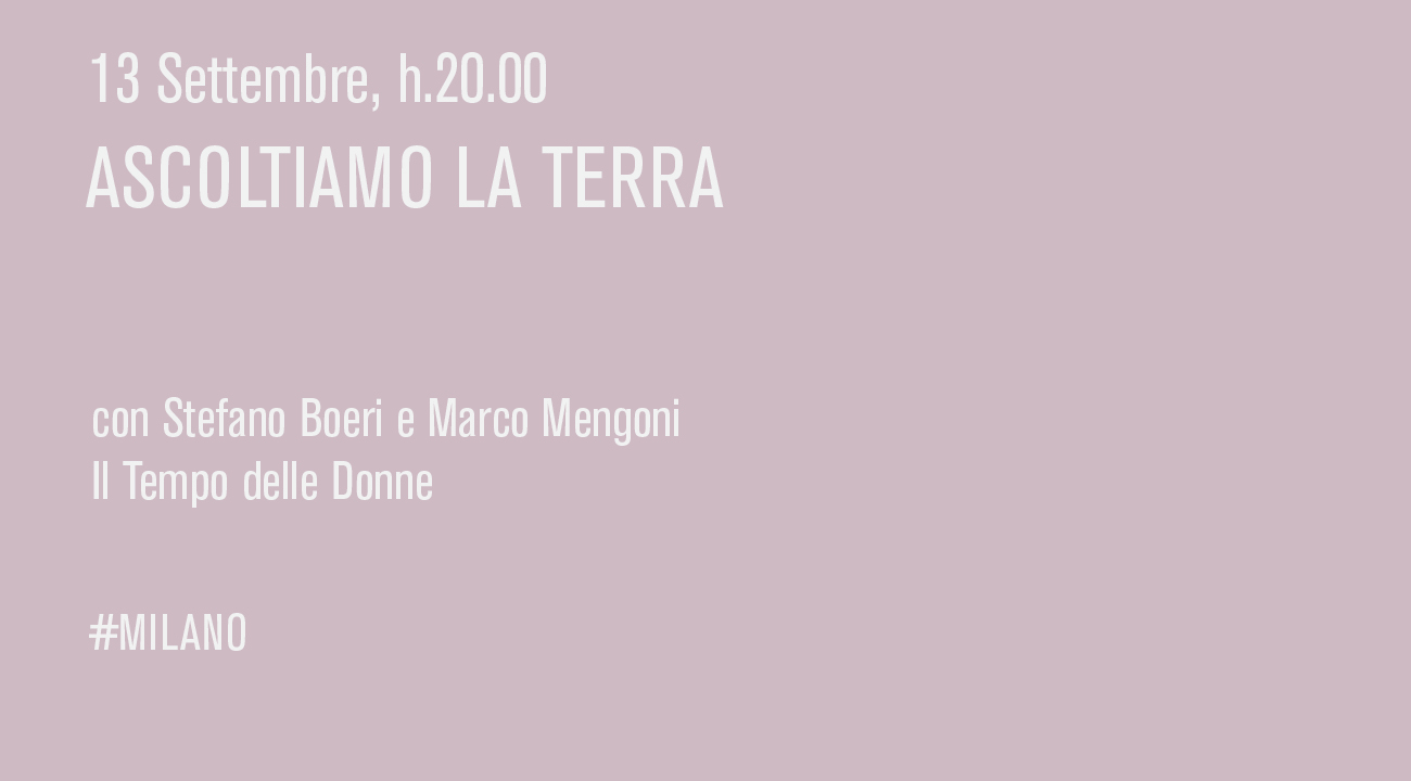 晚上8点在 Giardinio della Triennale,斯坦法诺·博埃里与歌手  兼词曲作家 Marco Mengoni 在一场名为 Ascoltiamo La Terra 的关于可持续性与美的对话中会面。
