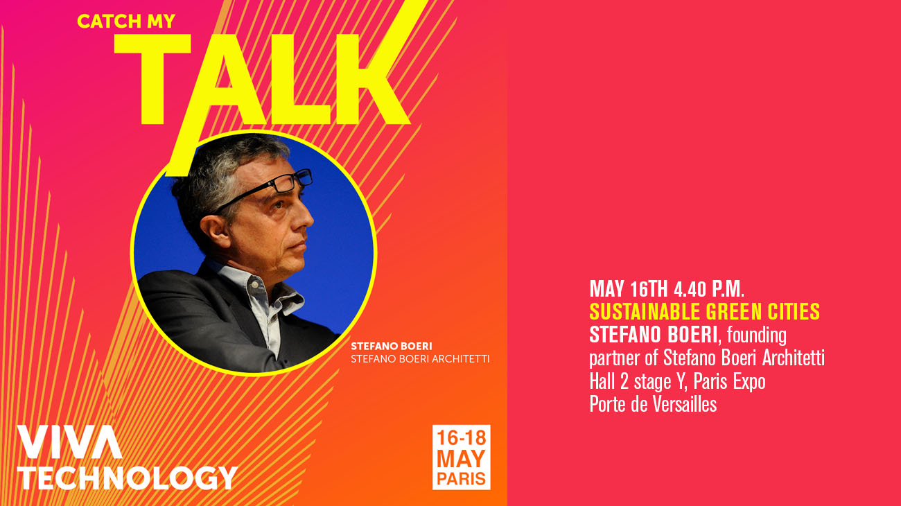 2019年5月16日周四,下午4点40分,斯坦法诺·博埃里(Stefano Boeri)将前往Vivatech参加一场关于可持续绿色城市的演讲。在那里,他将通过自己的实践经验,讨论为世界各地的城市居民创造更绿色、更健康的未来的策略。考虑到全球70%的人口预计将在往后30年居住在城市地区,面对气候变化,关注城市生态问题比以往任何时候都更加紧迫。