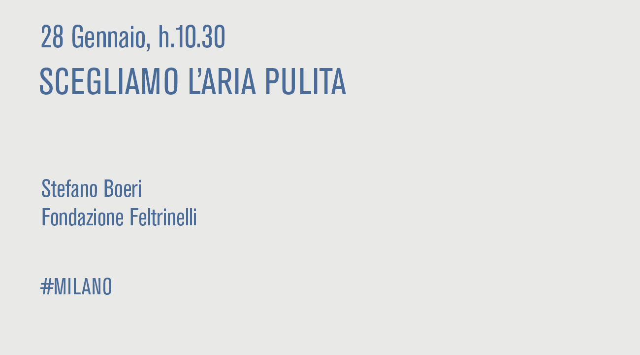 1月28日星期二,在Via Pasubio的Feltrinelli总部,与建筑师斯坦法诺.博埃里举行了会议,与意大利Vaillant Group首席执行官Gherardo Magri,Eumetra科学委员会的Renato Mannheimer和未来学家Risto Linturi进行了对话。由Vaillant集团组织并由Sky TG 24副局长Alessandro Marenzi协调的活动,以“我们选择清洁的空气”为标题,致力于应对全球城市面临的全球挑战,以阻止气候变化进程。为了减少大气中气候变化气体的浓度。上午,还将介绍新的Eumetra研究结果,作为有趣的想法进行讨论和辩论。