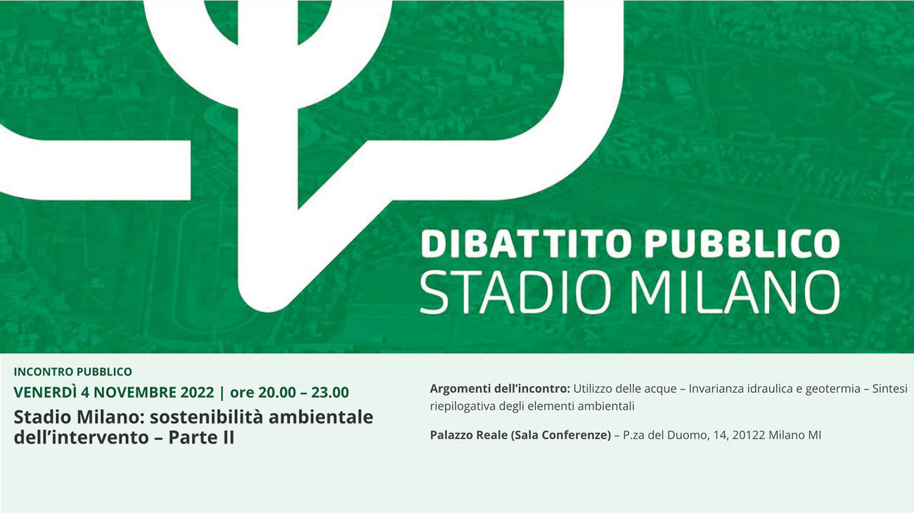 2 11月 2022 新米兰体育场公共辩论 | 斯坦法诺.博埃里 米兰市政府举行了米兰新体育场的技术和经济可行性研究报告的公开辩论会。活动目的是向公众介绍在圣西罗地区建造新体育场的方案,并收集意见和建议,以便对该项目进行评估和改进。 11月4日星期五晚上8点,在 米兰体育场:干预的环境可持续性——第二部分 活动中,博埃里将发表演讲,介绍有关该市新的可持续体育场项目的意见和建议。