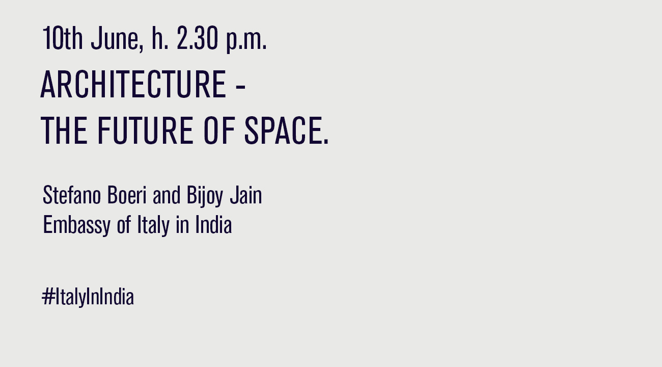 6月10日,星期三,斯特法诺·博埃里与印度著名建筑师比约·贾恩(Bijoy Jain)进行了一次对话,由意大利驻新德里大使馆组织。