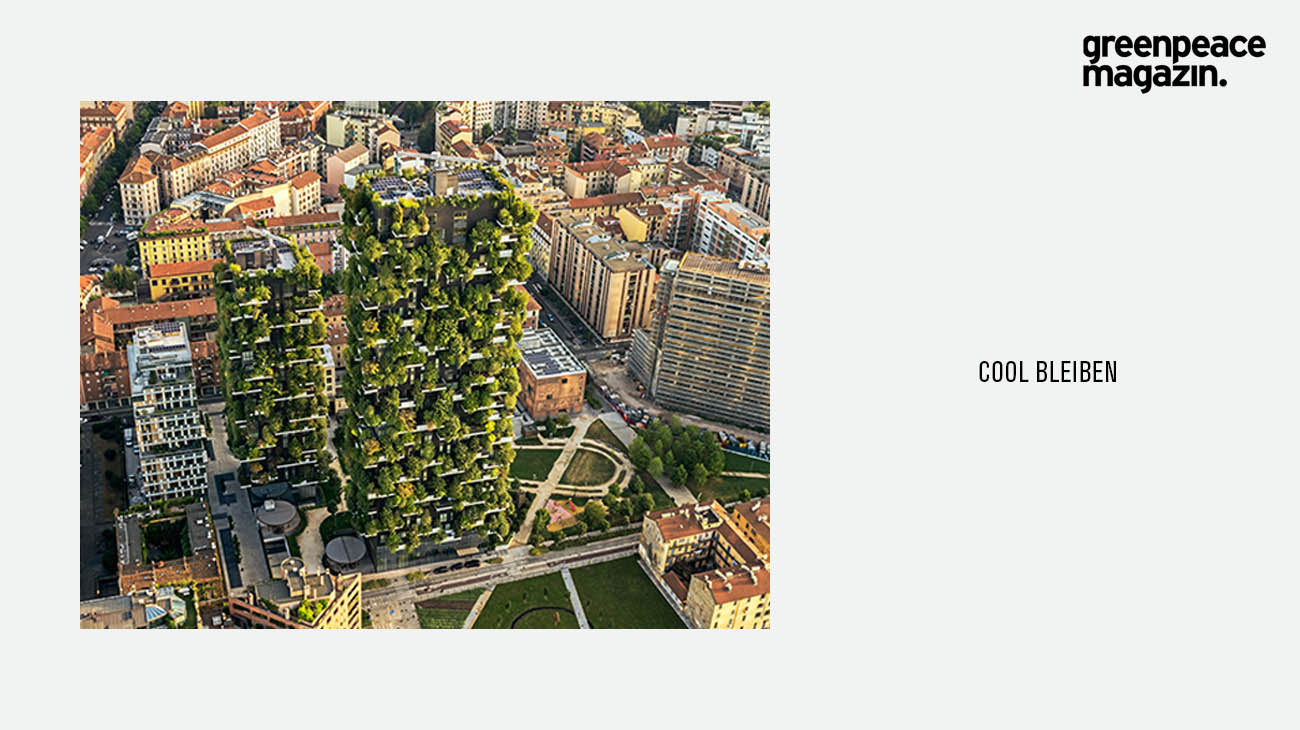 在Greenpeace Magazin志上一篇文章反映了与气候变化、城市过热和当代城市宜居性有关的问题。关于城市规划战略和大城市可持续性的论证,涉及到土壤消耗、城市空间内车辆的减少以及当代城市森林的概念。