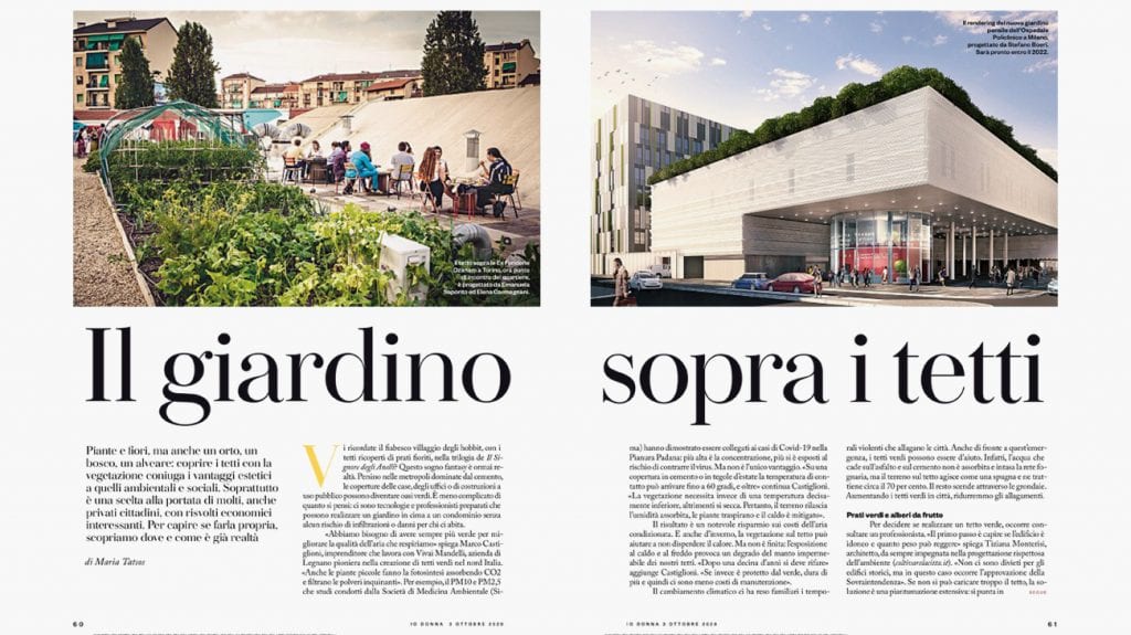 Io Donna杂志——Corriere della Sera旗下的女性周刊——种的绿色花园建筑专题种介绍了由博埃里建筑设计事务所为新米兰综合医院设计的空中花园。该项目面积约7000平方米,拥有多种树木,药用植物。 综合诊所屋顶花园的景观与色彩疗法的潜力是相关联的,而且将随着季节的变换而变化。