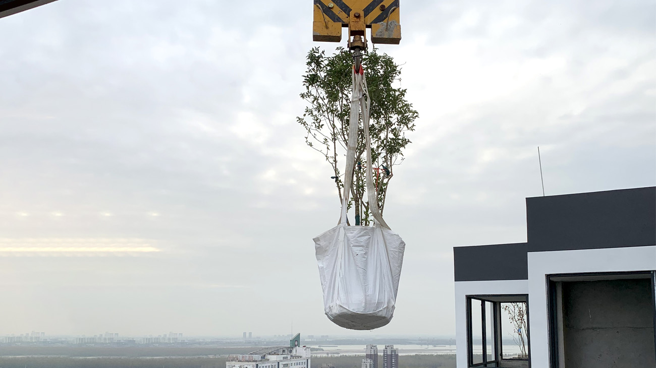 2020年11月—近日,在距武汉市约80公里的湖北省黄冈市,一台起重机将居然之家黄冈垂直森林城市综合体的第一棵树举到离地面90米的25层。这是一棵在湖北当地生长的桂花树,每座塔楼还将添加另外395棵树,3,600株灌木和12,000株多年生植物。两座垂直森林的揭幕仪式将于2021年2月举行。