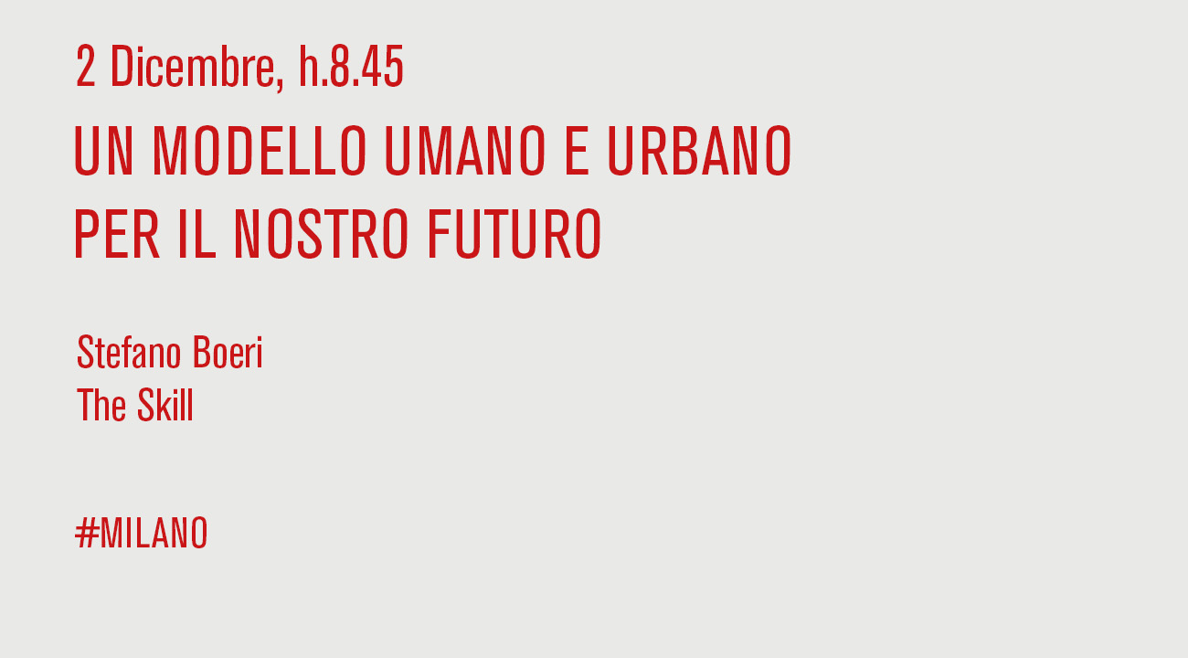 12月2日星期一, Dejeuner与建筑师斯坦法诺.博埃里和Fondazione Cariplo的总经理Sergio Urbani进行了对话,Skill 主持了这次特别会议,会议的主题是:我们应该以什么样的人类城市模式作为未来的参考,为我们和我们的孩子在未来的几十年种建立社会和公民的共存?