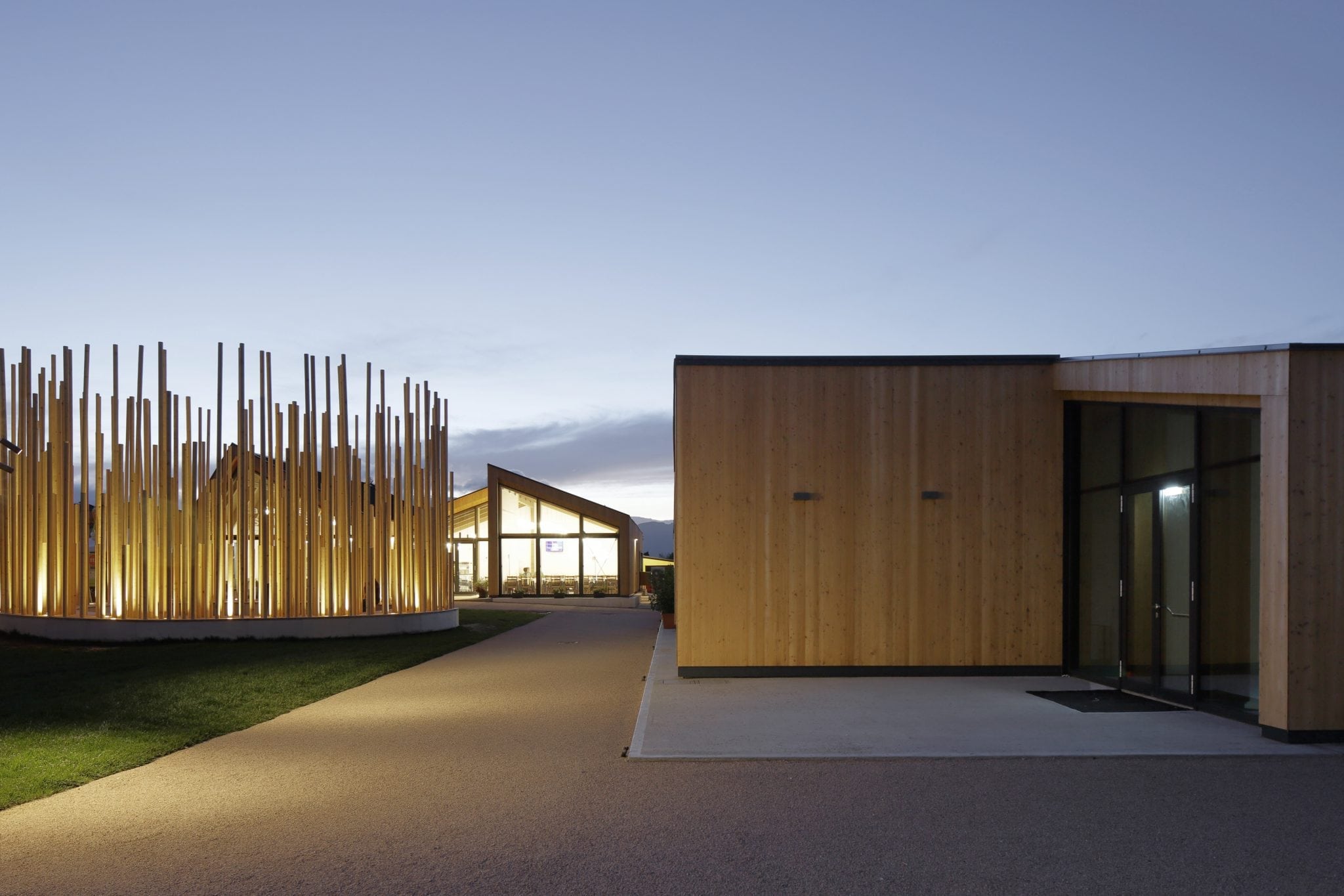 Radura也是一个内置于较大的开放空间内的小空间,在大空间内部和小空间外部,种植着350棵不同比例的落叶松,松树和冷杉柱,作为一个可渗透的过滤器。 然而,树木也不仅仅只存在于该装置外面,因为一眼望去,该装置圆柱形的元素也像树木一样向天空伸展,别具风格。