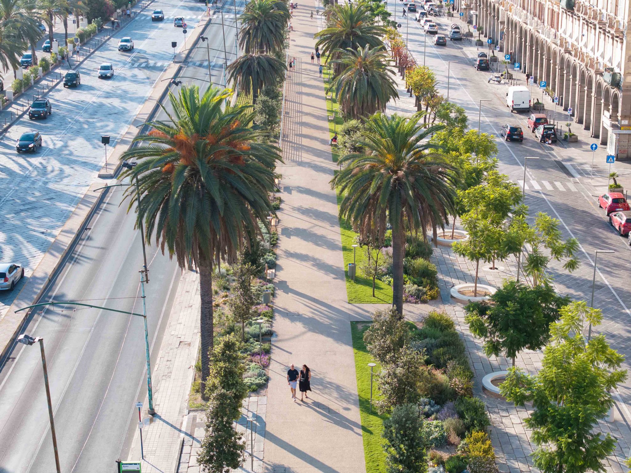 为了保护生物多样性、对抗气候变化的影响和净化空气,绿化是非常重要的一环: 除了维护所有现有的树木外,还计划种植200多棵新树和增加约5700平方米的绿地,一个可通过罗马大道抵达的新城市公园。该项目将有助于增加绿植,过滤微细粉尘和吸收二氧化碳,最终达到减少“热岛”效应和缓解气候变化的目的。