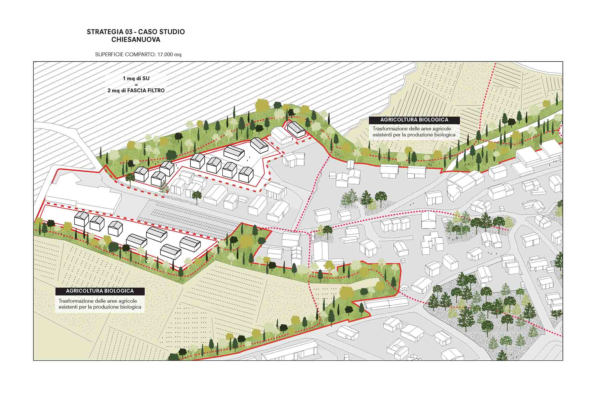 另一方面,土地中参杂着的的人为因素已经严重地改变了自然秩序:树木覆盖区域(减少至总量的10%)呈现碎片化分布,溪流和河流的水质受到城市和工业废物的严重影响。因此,圣马力诺2030计划提出加强生态领土体系的构建,而首要的任务是将最有价值的元素组织成为一个网络体系。圣马力诺的地貌特点是具有大范围的沟壑和峡谷 – 占领土的11% – 以及因土地维护不当和废弃而经常发生的滑坡现象。为了解决这些问题,此项目还设想进一步明确那些存在潜在不稳定性以及地震防御性差的地区,并在项目实施期间根据其具体情况对总体规划进行调整,确保即使在发生自然灾害的情况下也能保证项目的安全实施。