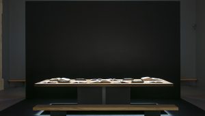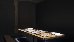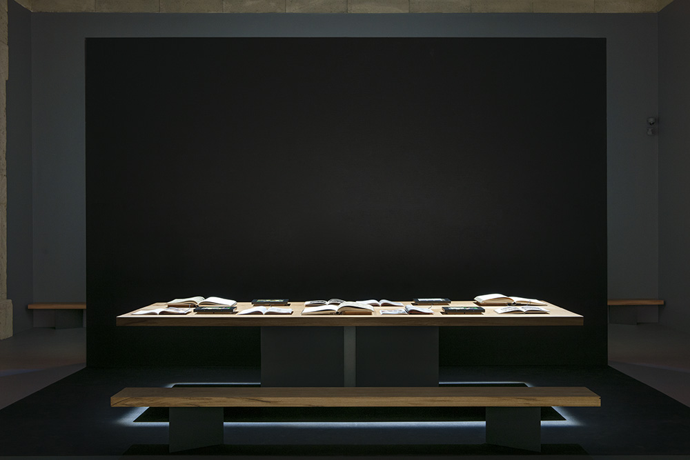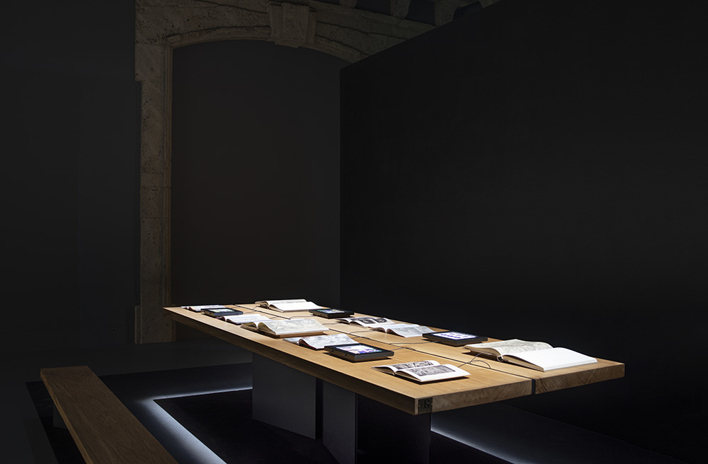 大厅中唯一与艺术品相对应的是与Riva1920合作实现的教学木桌,从一棵150年历史的实心橡木树干切成的两块4米长木板,并采用抛光后的铁基合金作支撑。“ 博埃里解释说 – 我们想要在拉斐尔图稿的大厅里放置一张实木大桌,由一棵有150年历史的橡木雕刻而成,由Riva1920制作,我们想要这个代表学院的非凡设计本身,就是一个具有学院性质的空间。这张充满启蒙意义的大桌子将盎博罗削画廊(Pinacoteca Ambrosiana)的第五大厅改造成为一个安静而有力量的学校,在这里,游客可以在欣赏图稿的同时了解与图稿相关的详细历史、起源以及阅读具有深刻含义的历史书籍。