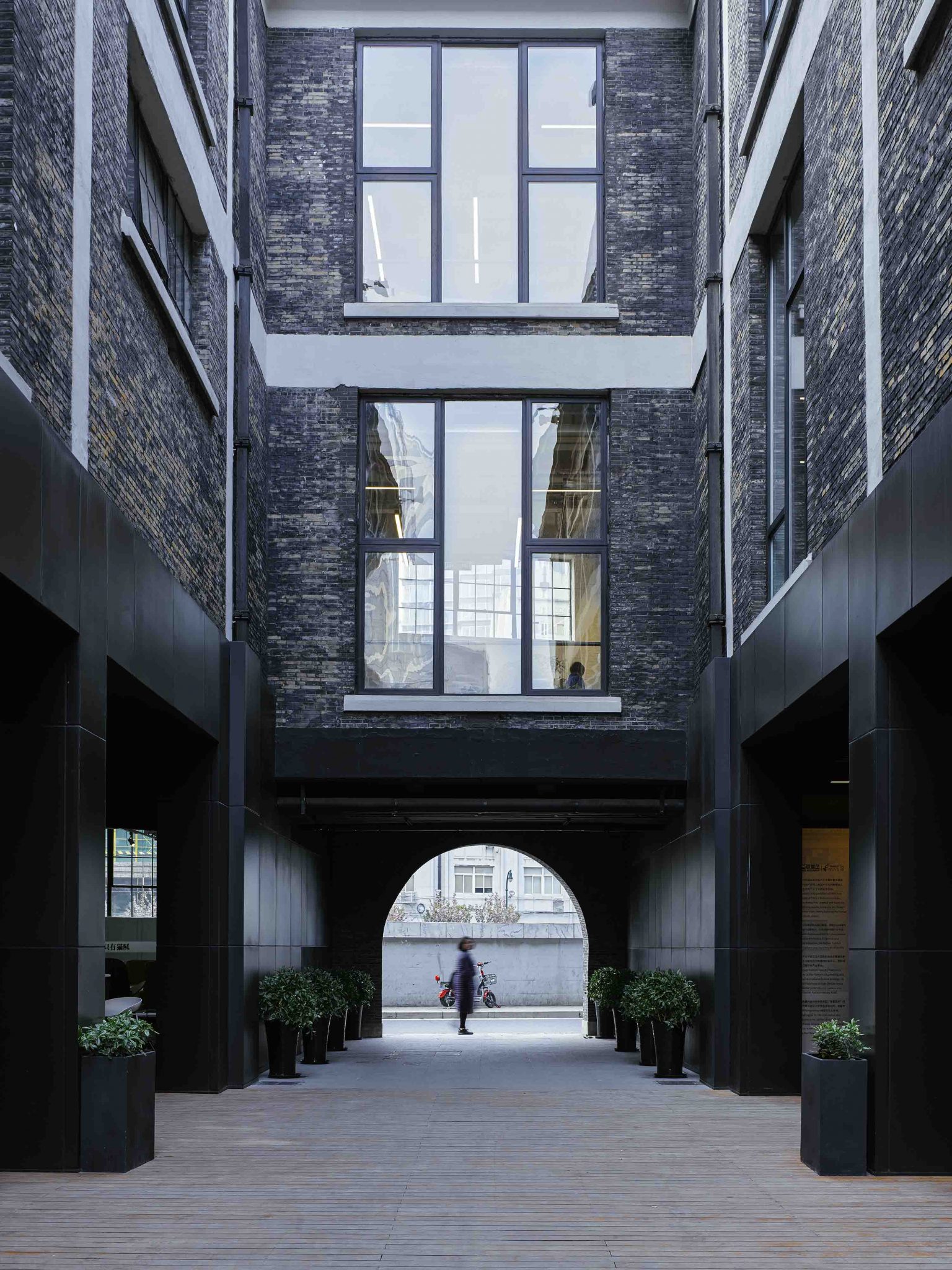 采用修旧如旧,以新补新的原则,充分尊重历史。改造过程中,SBA尽力保留了原建筑结构和材料,以向人们展示上海近代工业旧仓库文化风貌。建筑外从外看是典型的英国式三层青砖建筑,墙面为清水青砖和红砖组合,并局部使用水泥修饰。墙面上设置有连续的弧形券窗,风格规整而又复古。
