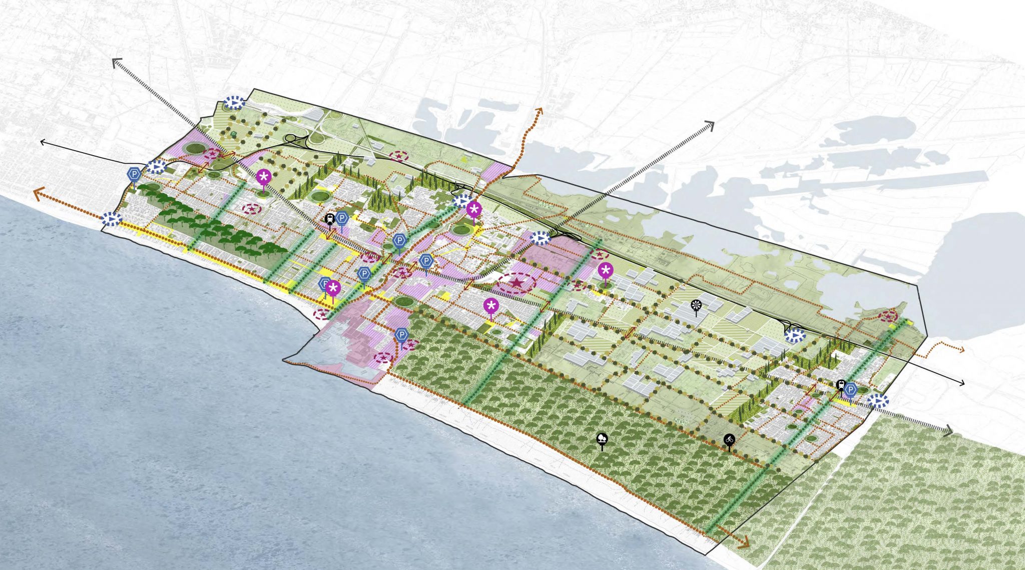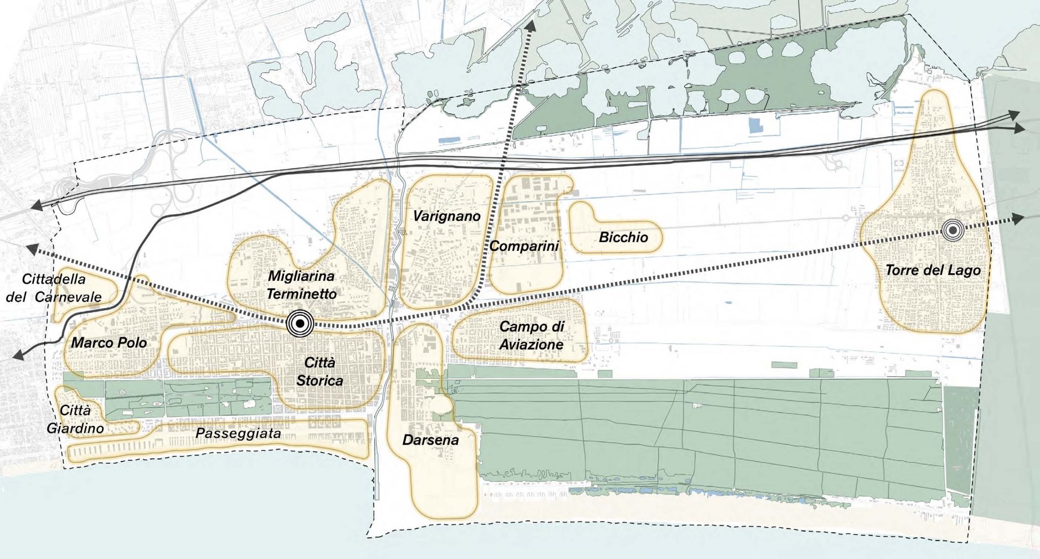 由博埃里建筑设计事务所设计、市政技术办公室协调的维亚雷焦(Viareggio)结构规划,旨在为该市确立中长期发展愿景。该愿景以维护和提升城市特色为核心,兼顾环境与社会经济因素。其中包括Migliarino San Rossore Massaciuccoli自然公园的生态系统——这片具有非凡自然价值的区域,以及造船业——该领域使这座城市因卓越成就享誉国际。