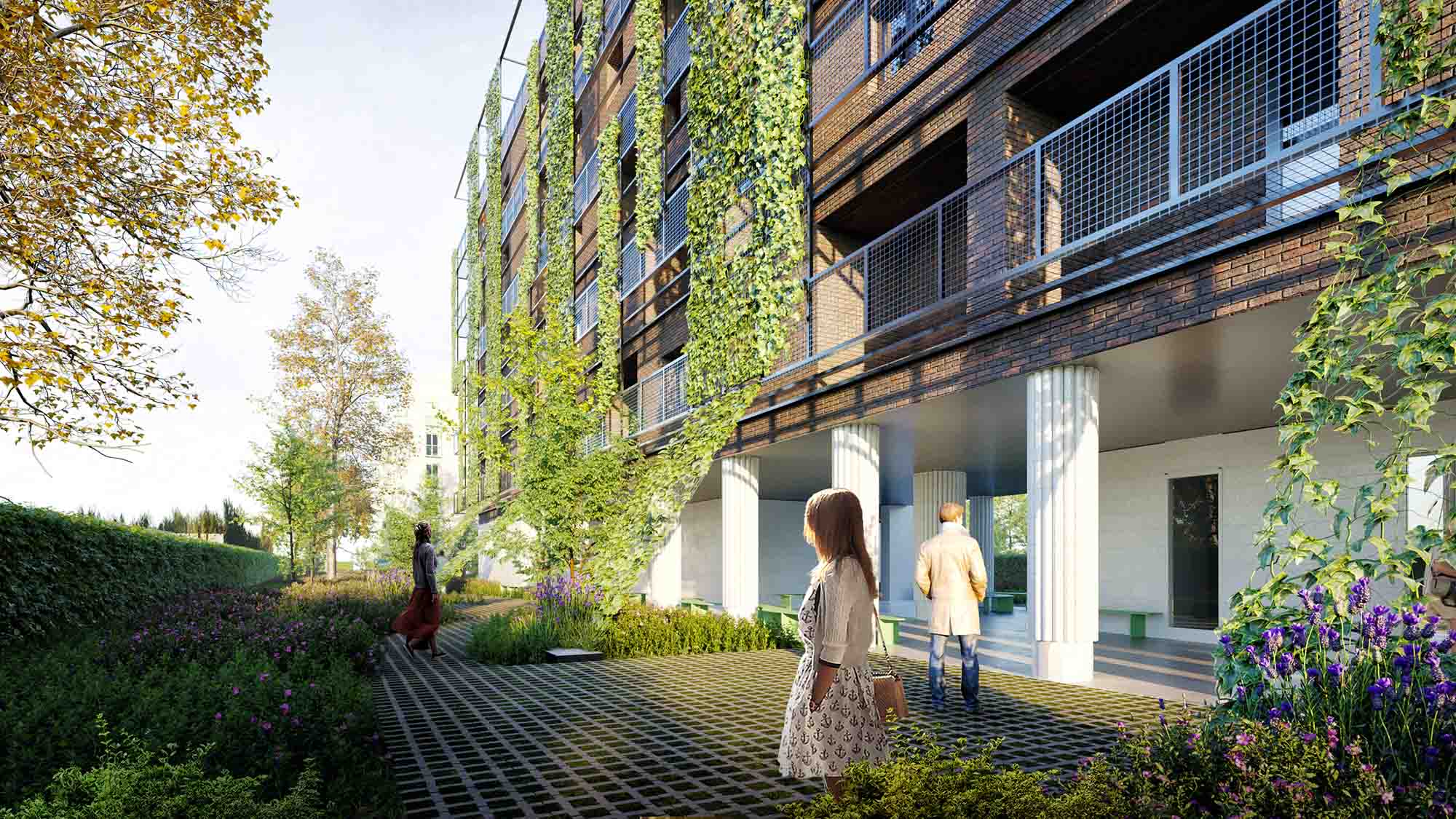 在建筑层面上,Baradello街12号的建筑计划对立面进行一系列点状干预,例如更换窗框,并通过新的阳台扩大室内空间,支持攀爬植物的系统等。而Baradello街6号的建筑除了计划更换窗框和柱子的陶瓷装饰外,其特点是增加连续的阳台,容纳攀爬植物,通过地面上的电缆系统固定。