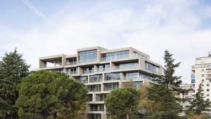 有两个包含电梯和公用设施的中心结构元素,公寓的布局围绕着它们发展。其中睡眠区的卧室朝北,起居区和休息区朝南,因此能够更好地利用自然光。建筑的基础由前两层组成,通过一系列商业和娱乐活动,对城市完全开放,有助于加强整个项目与城市文化环境的联系。甚至材料的使用也强调了地面层和上层之间的明显区别,以及石材表面和落地窗的交替,促进了室内外、私人空间和公共空间之间的关系。商业区域与公共空间的关系是通过连续的路面来实现的,它容纳了一个小花园,其特色是整齐排列的树木,部分是草坪,部分是当地的灌木。