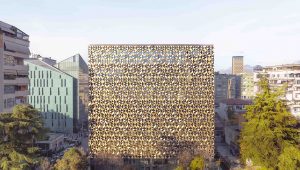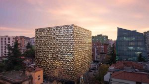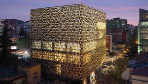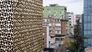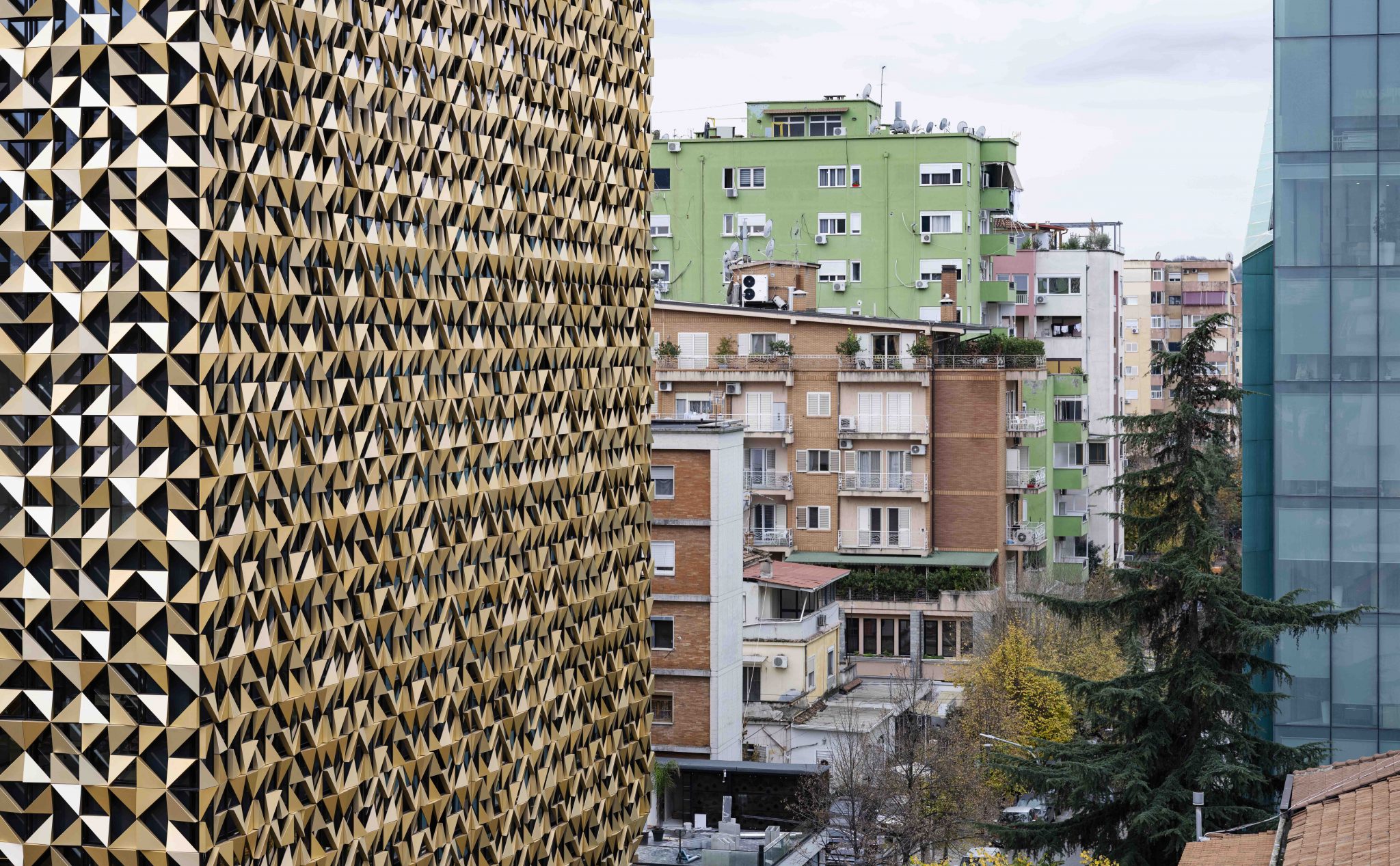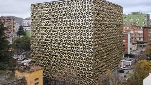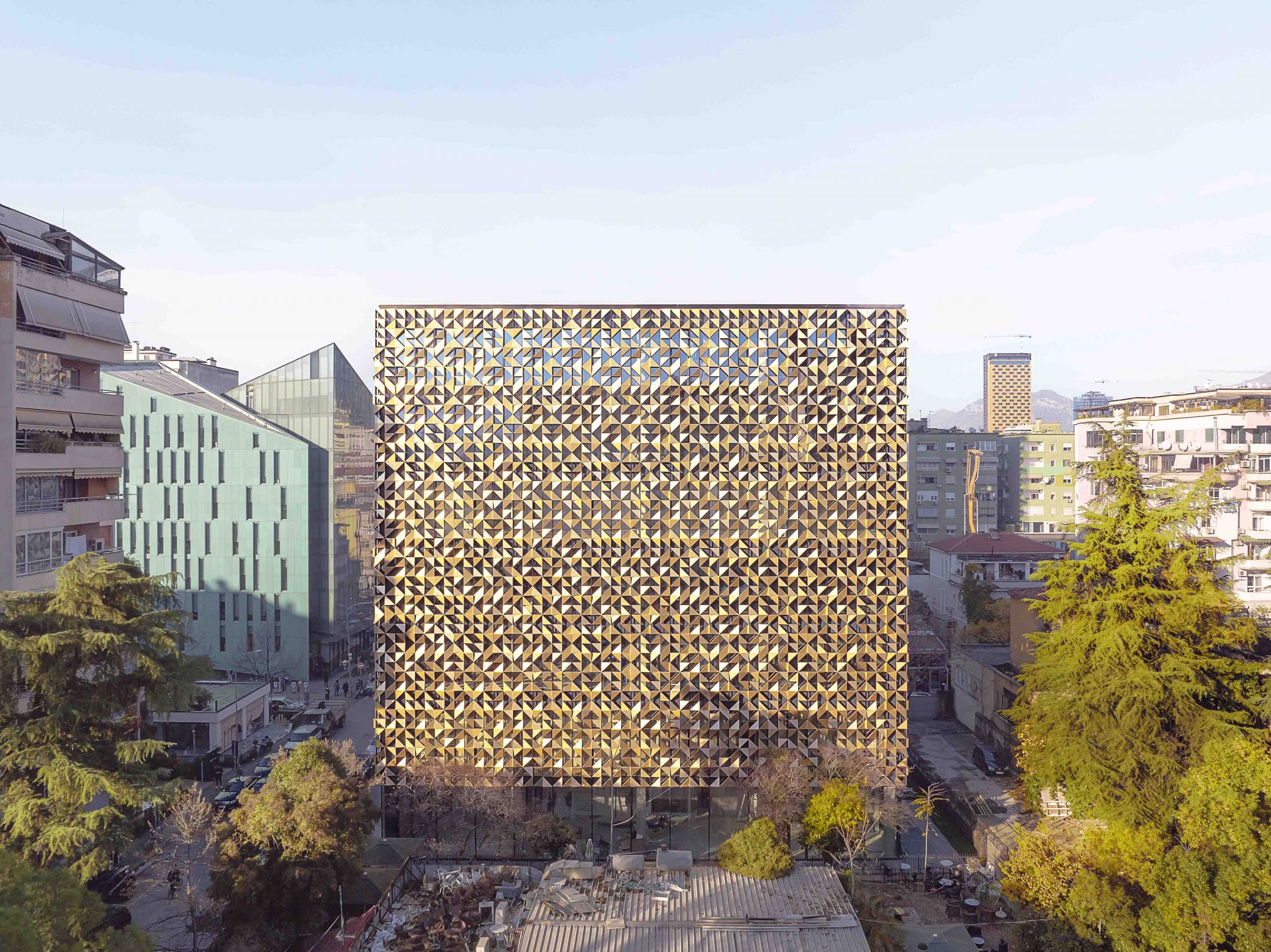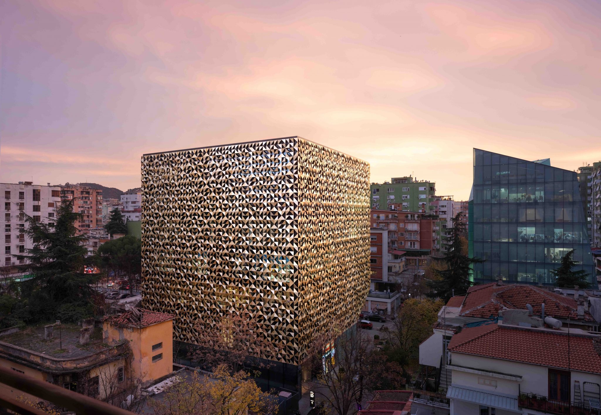 “欧洲多用途大楼项目” 由博埃里建筑设计事务所(Stefano Boeri Architetti)开发,位于阿尔巴尼亚地拉那的布利洛克区市中心的Pjeter Bogdani和Vaso Pasha大街的交叉路口。这个选址靠近历史悠久的居民区,之前是共产主义独裁者Enver Hoxa的军事禁区,具有重要意义。这栋大楼主要用于办公,还包括一楼的几个商业活动区、几个商店,和一个酒吧,以及六楼顶楼的一个餐厅(顶楼为露天花园餐厅)。大楼下面建造了五层地下停车区,主要服务于附近的众多的居民。从平面上看,该大楼状如立方体,长宽均为30米,一楼如悬臂“切口”一样,面向西北交叉点。