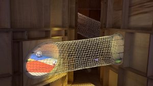 博埃里建筑设计事务所的装置艺术位于曼彻斯特Factory International的文化基地——艾维亚工作室。这个文化空间致力于创意与大型沉浸式体验。该装置于7月4日至8月24日向公众开放,其设计灵感源自场馆的工业特质,与空间美学相呼应,营造出浓烈而标志性的足球氛围。作为11件足球主题作品的核心展品,该装置成为全场焦点,邀请观众化身足球运动中标志性角色的互动参与者。